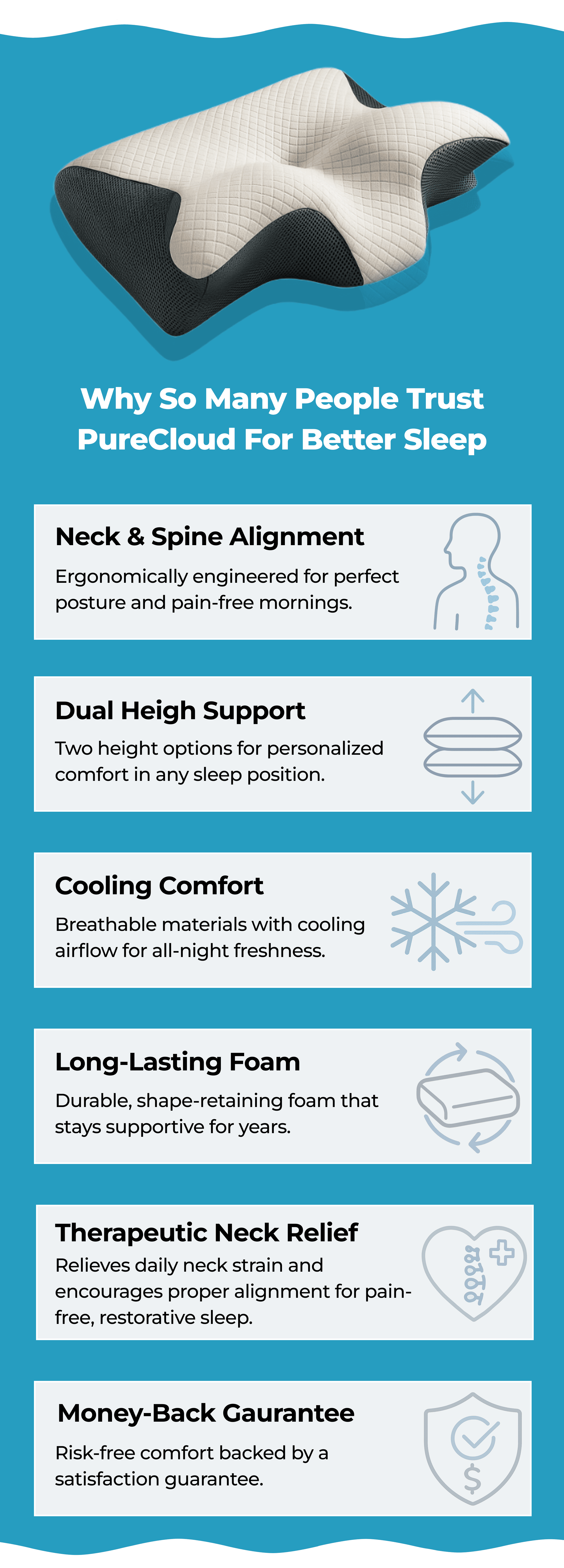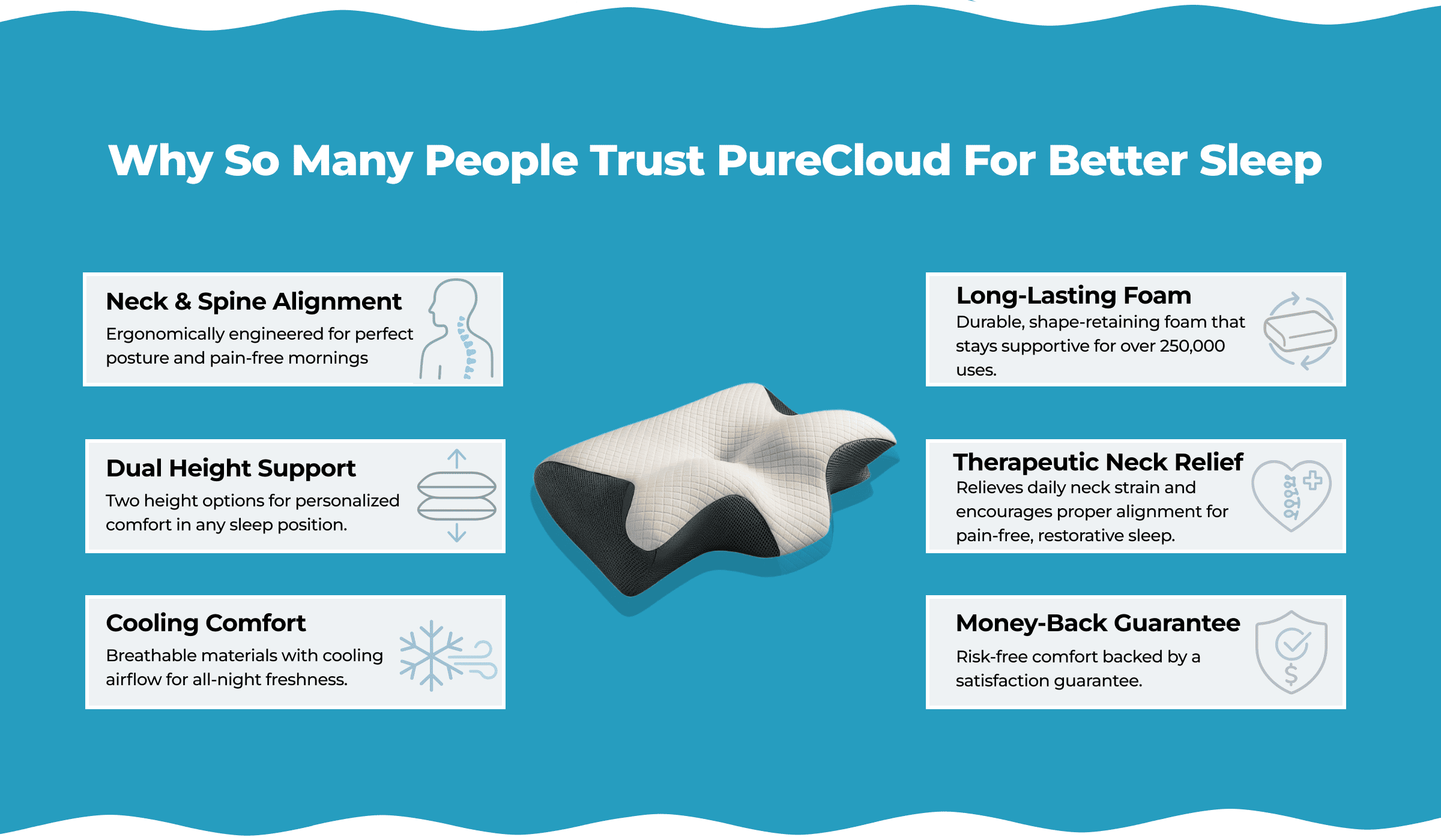 It’s ideal for all ages. Whether you're looking for posture correction, better sleep quality, or proactive neck care, PureCloud works for teens, adults, and seniors alike.